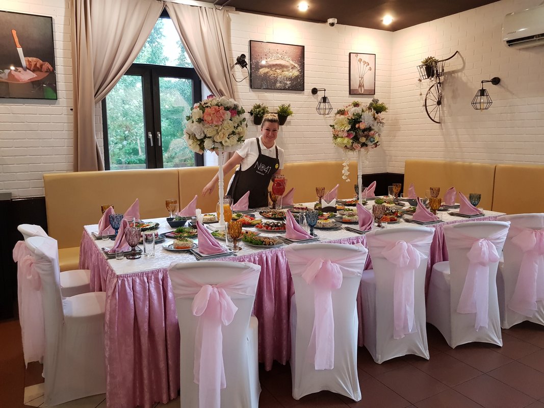 Мы совершенно случайно наткнулись на данное кафе, подъехали, посмотрели, нас все устроило, мы заказали стол. И не пожелали. К сожалению, отмечали не торжество. Нам очень понравилось обслуживание и кухня. Официант Виктория вовремя подавала блюда, следила за столом, стол был чистым и аккуратным. Кухня вкусная, все блюда понравились, мне особенно понравилась рыбка в кляре, а маме буженина. Цена вполне приемлемая.