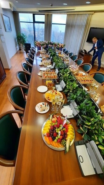 Заказывали здесь банкет . Качество еды отлично , все свежее и вкусное . Сортировка стола великолепная ! официанты молодцы. Все гости остались довольны рекомендую всем !