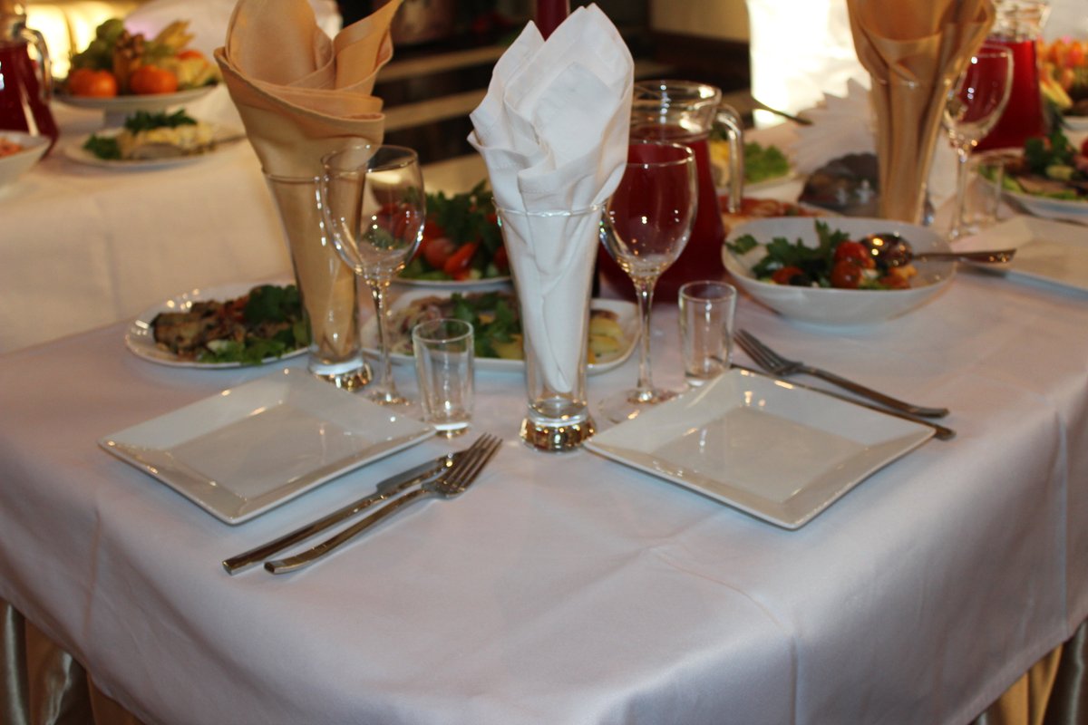 Сервировка столов, оформление столов и банкеток все очень торжественно!
